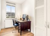 De luxe badkamer is modern uitgevoerd en voorzien van een ruime inloopdouche, hangend toilet, wastafelmeubel, designradiator en een aansluiting voor de wasmachine. Aan de achterzijde zijn een 2-tal ruime slaapkamers gelegen.