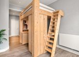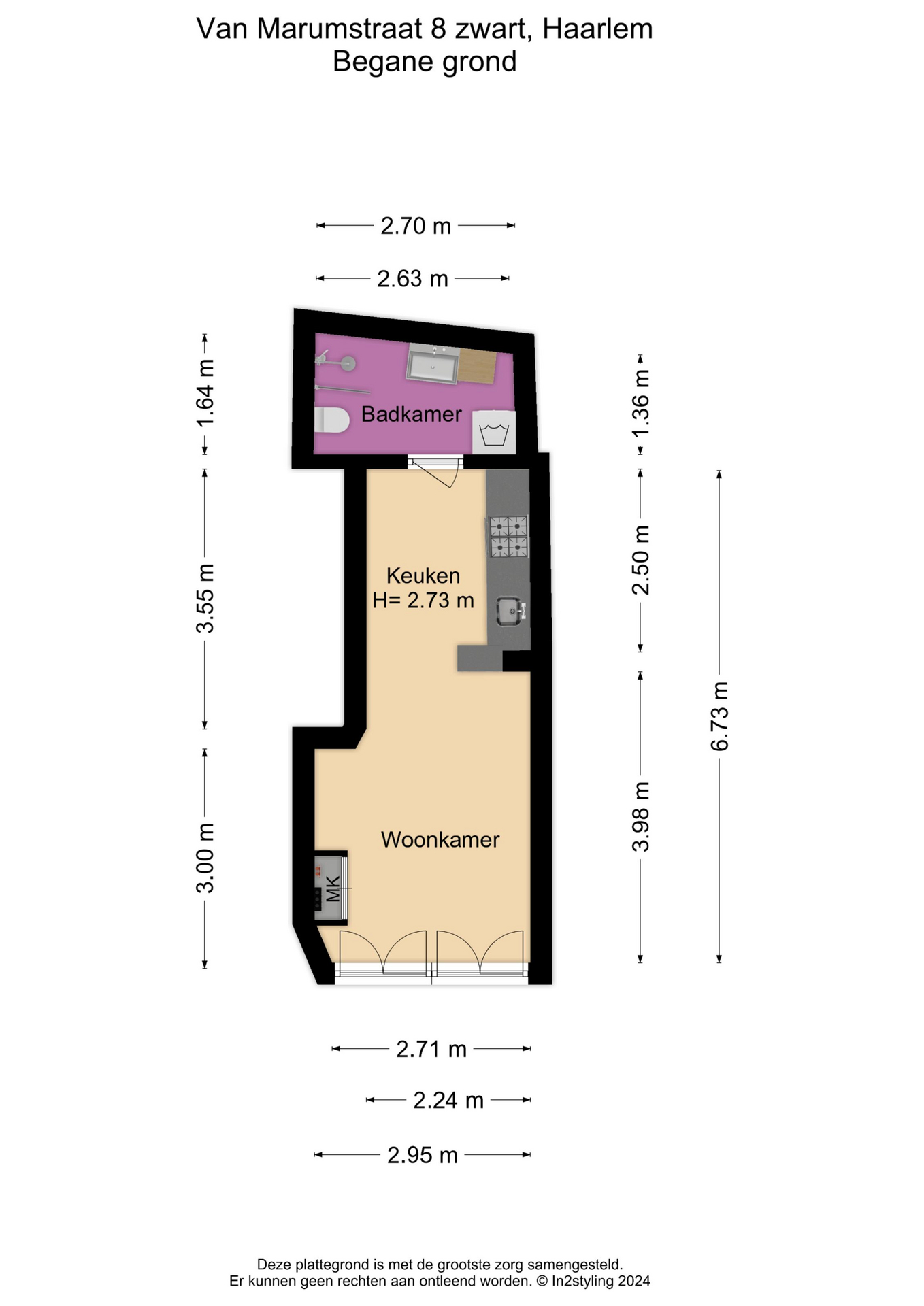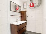 middels twee openslaande deuren kom je direct in de woonkamer, tevens slaapgedeelte, moderne open keuken compleet voorzien van diverse inbouwapparatuur, moderne badkamer voorzien van toilet, douche, wastafel met meubel en wasmachine-aansluiting.
