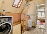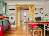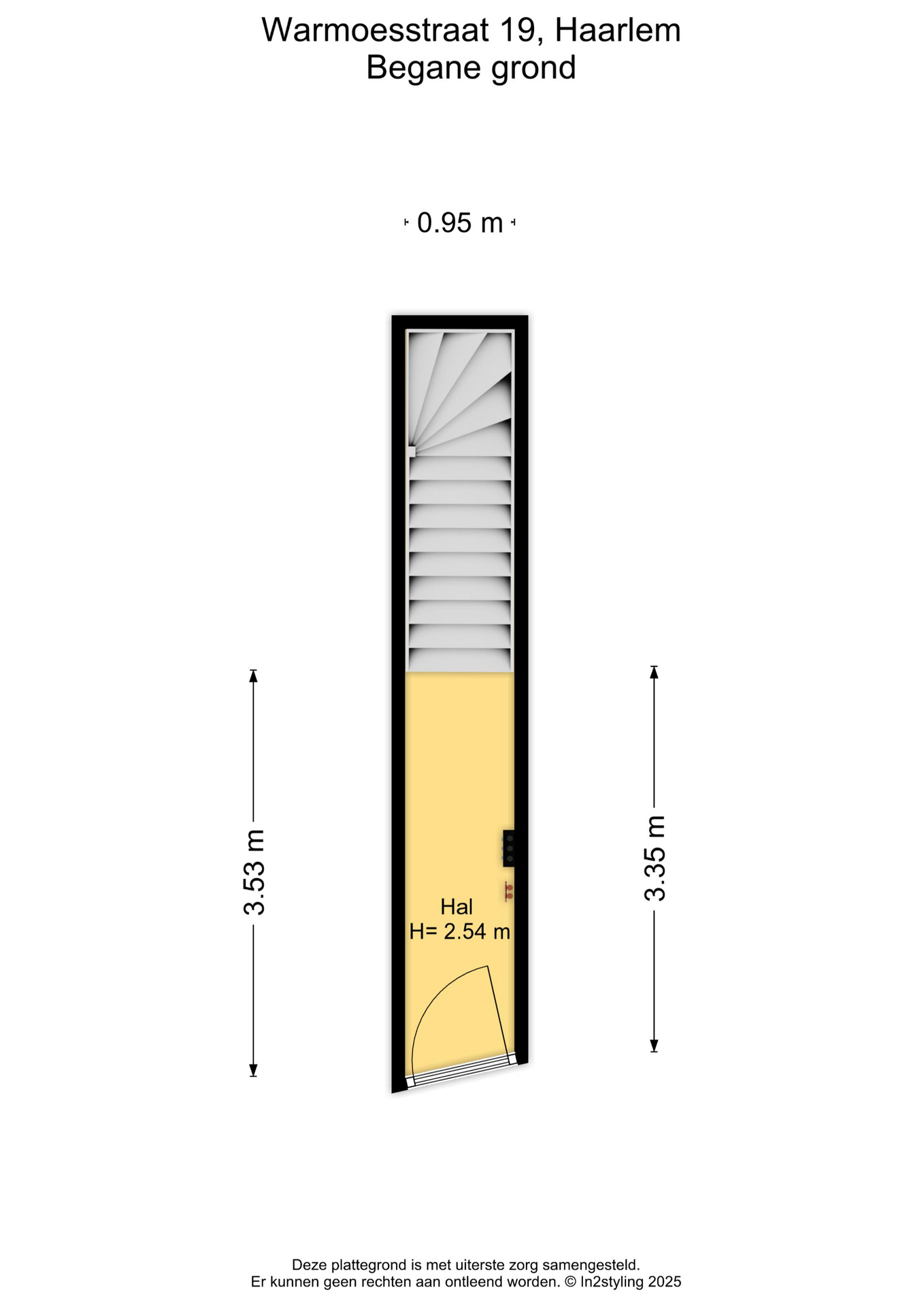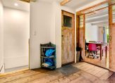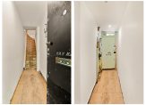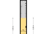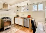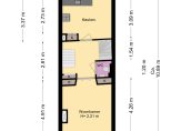 zeer ruime hal, toilet, woonkamer aan de voorzijde met uitzicht op de levendige straat, eenvoudige maar functionele woon- eetkeuken aan de achterzijde.