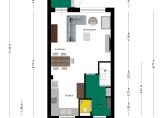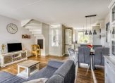 De sfeervolle woonkamer is goed in te delen met een hoekbank, tv-meubel, eettafel en een grote kast. En komt er een jong gezin wonen, ook voor een box en andere babyspullen is plek in deze woonkamer. Aan de achterzijde is een portaal, die toegang biedt tot de tuin.