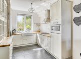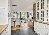Vanaf de eettafel is het een paar stappen naar de keuken, waar iedere kook- en bakliefhebber heel blij van wordt. Dit is een keuken met een mooie uitstraling en een gezellige sfeer! De gaskookplaat, afzuigkap, vaatwasser, combi-oven en koelkast staan klaar voor gebruik.