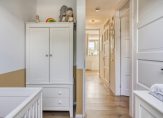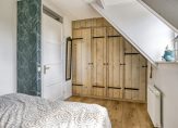 Aan de voorzijde is de master bedroom, over de hele breedte van het huis. De maatwerk kastenwand biedt volop ruimte aan kleding en deze kamer heeft een dakkapel, met mooi uitzicht naar de rustige straat.