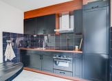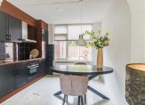 De keuken is ingericht met een complete inbouwkeuken en een kunststof aanrechtblad met dubbele RVS-spoelbak. Aan inbouwapparatuur vindt u onder andere een RVS-afzuigkap, koelkast, 3-laden vriezer, 4-pits keramische kookplaat, combimagnetron, vaatwasser en een elektrische boiler (10 liter).