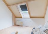 Via een vaste trap bereikt u de royale zolderverdieping met een extra slaapkamer van circa 12 m². Dankzij het dakraam geniet deze kamer van veel natuurlijk licht.