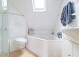 De badkamer is uitgerust met een wastafelmeubel, hangend toilet, douche met cabine en ligbad. Ventilatie geschiedt op natuurlijke wijze.