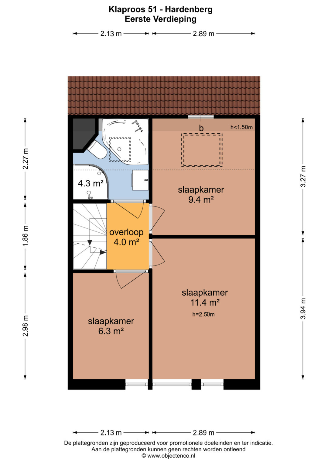 Overloop met drie slaapkamers en de badkamer. De slaapkamers meten oppervlaktes van circa 11, 9 en 6 m² en zijn allen voorzien van een laminaat vloer. De (ouder)slaapkamer is eveneens voorzien van een airconditioningunit.