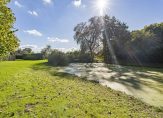 Aan de achterzijde grenst het perceel aan een boomgaard met oude en een paddenpoel .