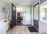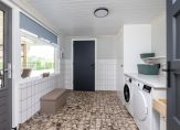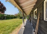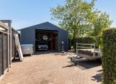 Verrassend en heel praktisch is dat aan de achterzijde van het perceel een eigen (afsluitbare) inrit is. Hier heb je ruimte om voertuigen te parkeren en heb je toegang tot de loods/ schuur van ca. 7.48 m x 5.48 m met hefbrug.