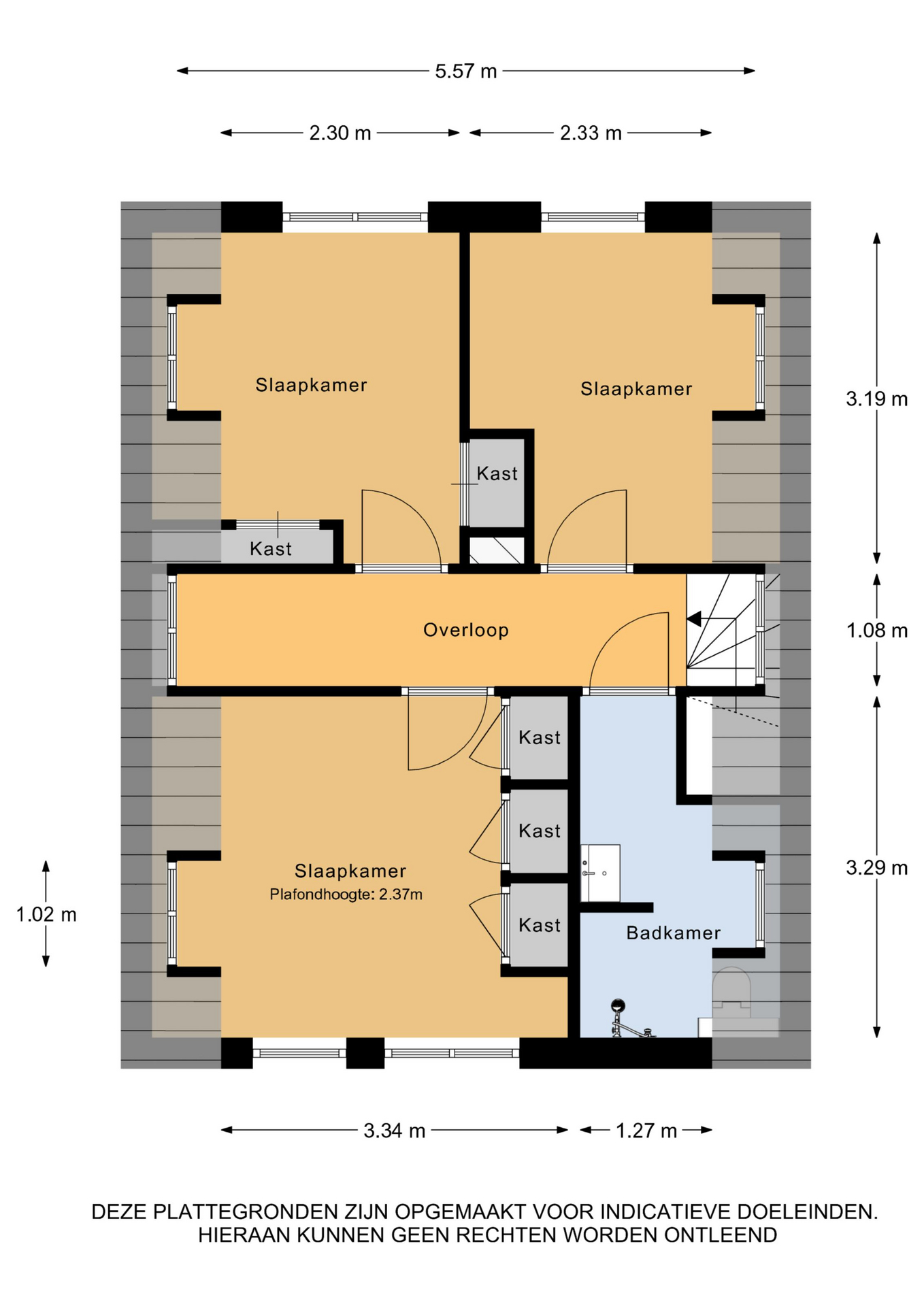 2e Verdieping: vlizotrap naar gedeeltelijk bevloerde bergzolder.