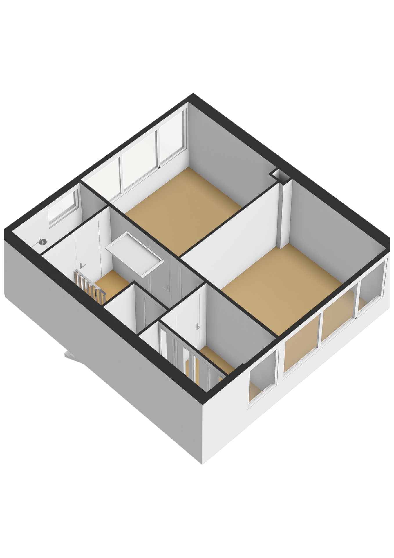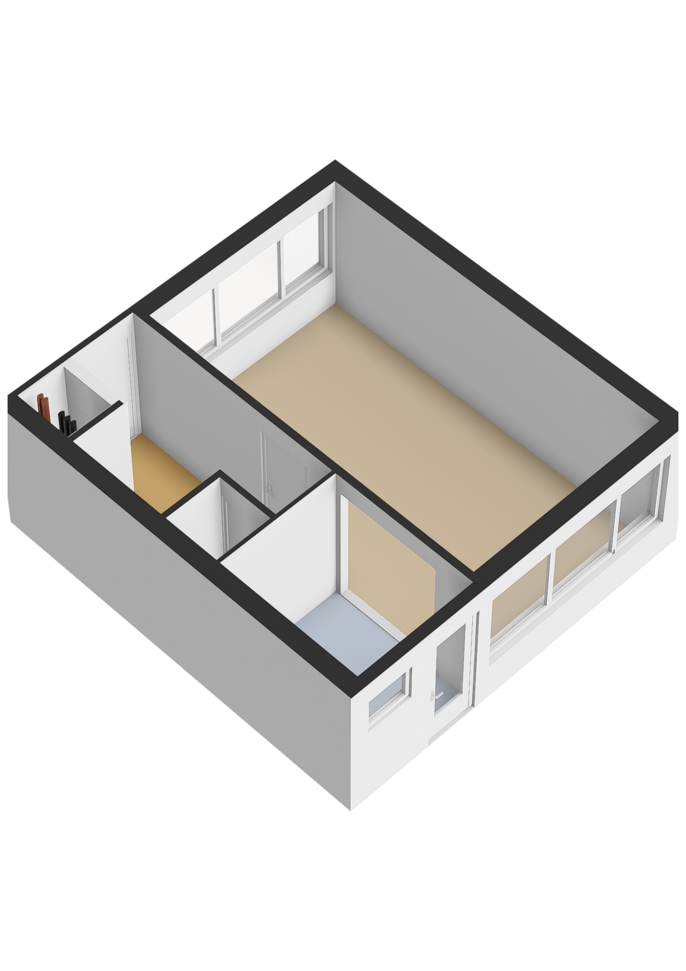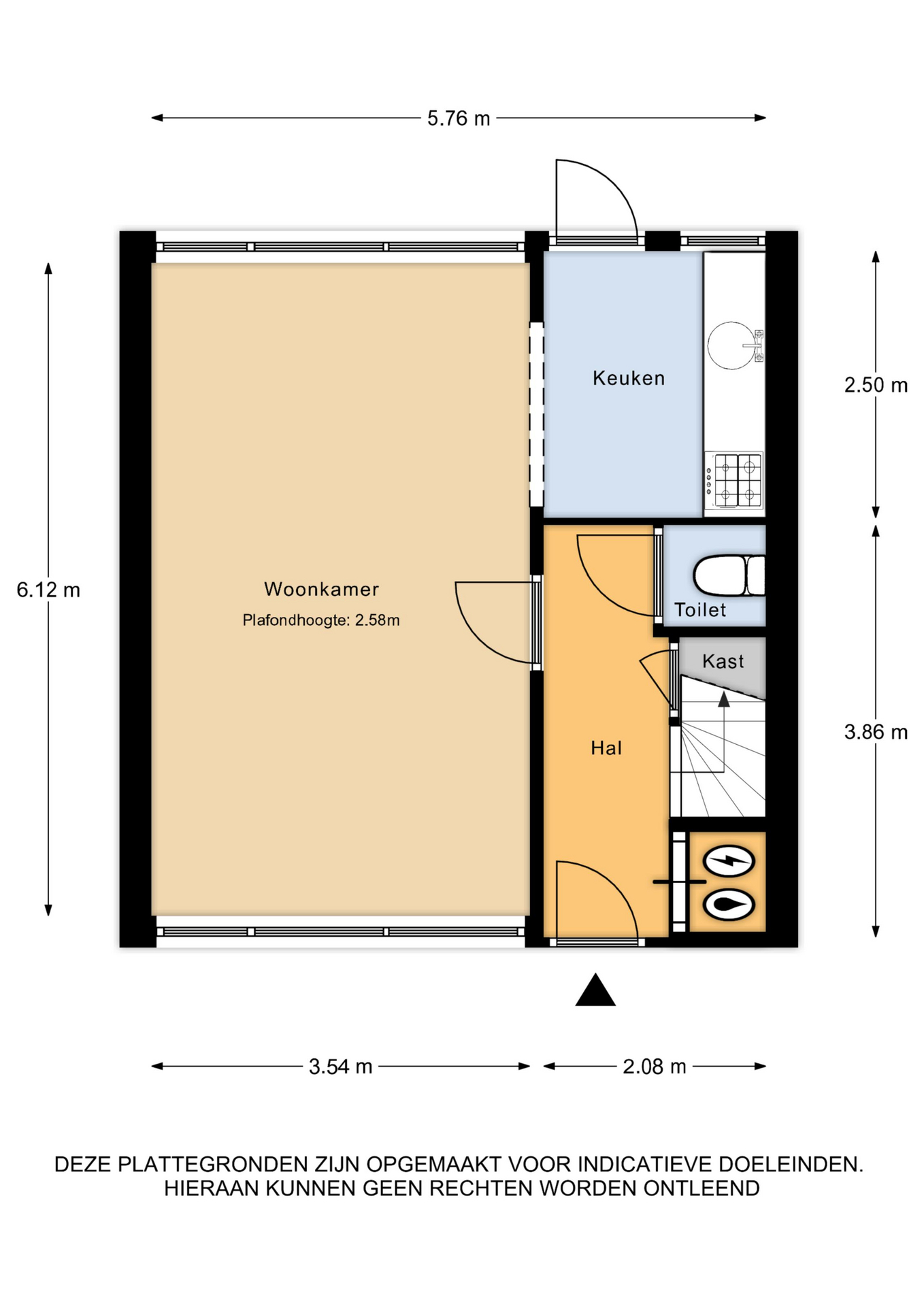 Begane grond: entree – bergkast met meterkast – trapopgang – toilet – woonkamer – open keuken – achteringang.