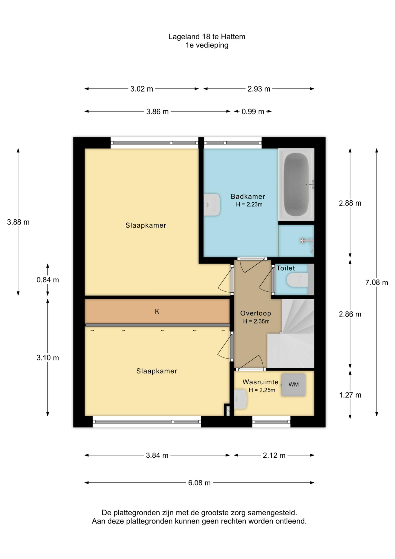 De woning heeft totaal vier slaapkamers en op de 1e verdieping vind je de ruime badkamer met ligbad, douchecabine en wastafelmeubel. Er is daarnaast nog een separaat toilet en een aparte wasruimte met opstelling van de wasmachine en wastafel. De 2e verdieping is uitgebouwd met een dakkapel aan de voor- en achterzijde en hier zijn nu twee mooie (slaap-)kamers met veel bergruimte achter de knieschotten.
