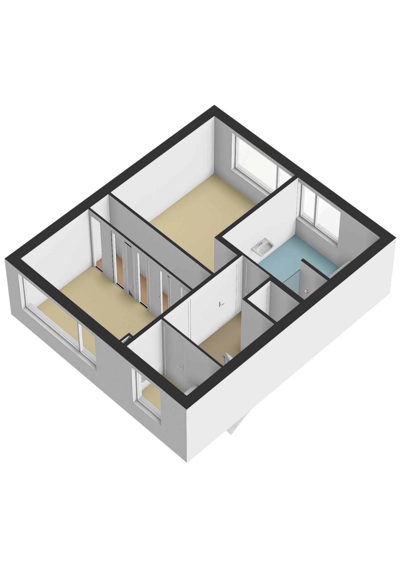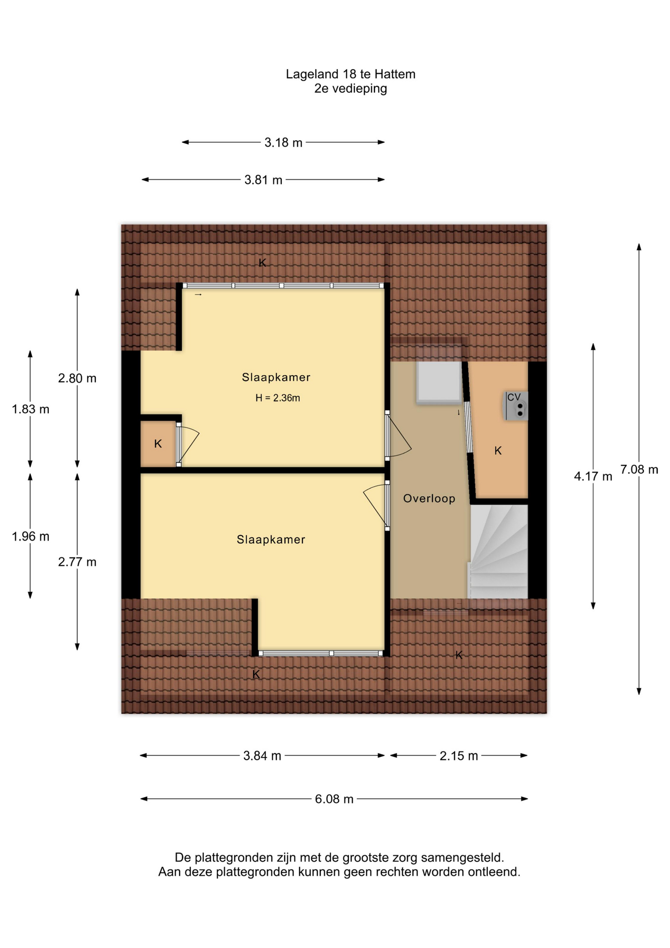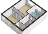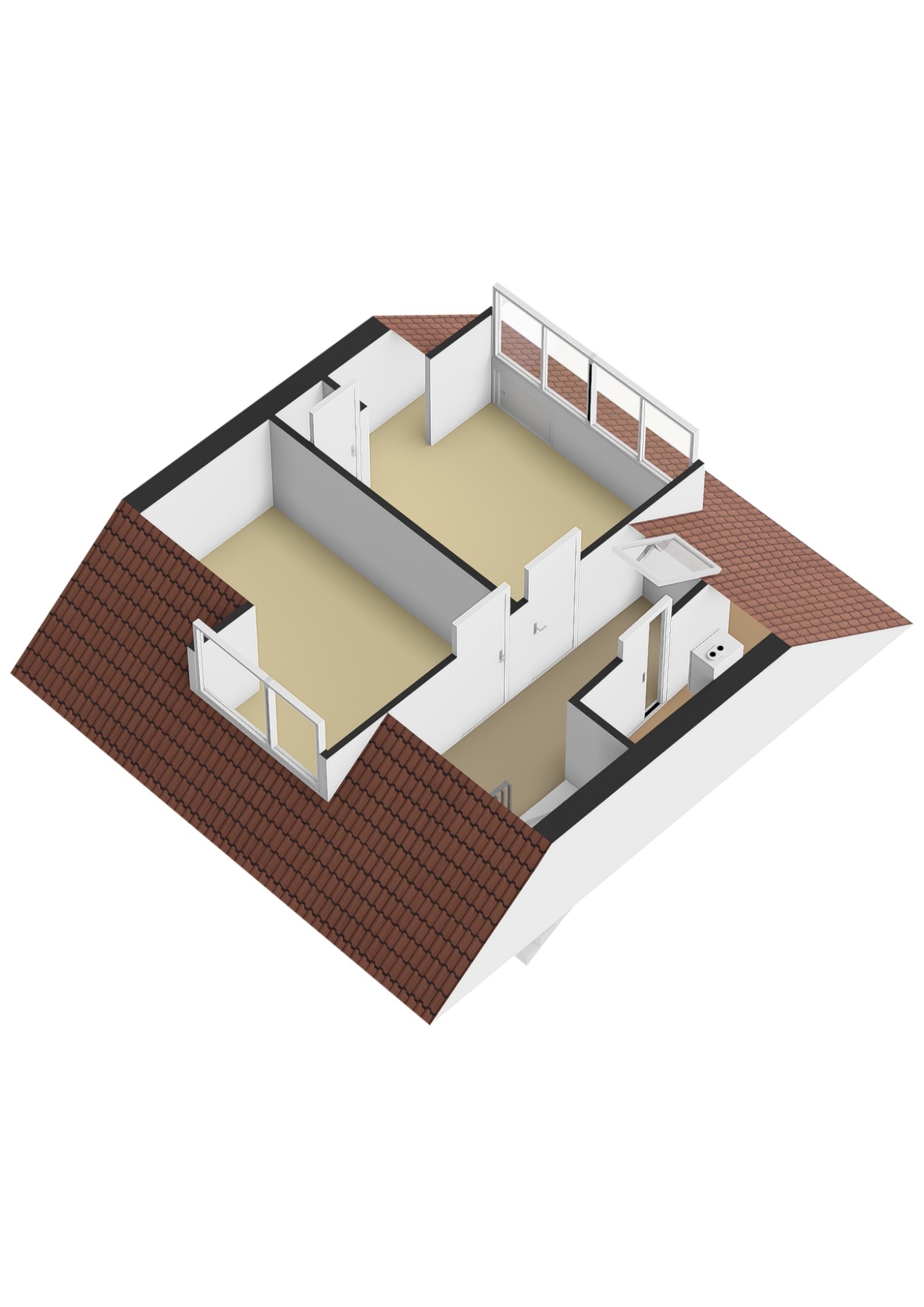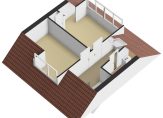 2e Verdieping: voorzolder met inbouwkast met opstelling van de CV-combiketel – twee slaapkamers beiden voorzien van dakkapel en één kamer met vast bureau en kast – bergruimte.