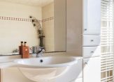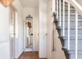 1e Verdieping: overloop – toiletruimte – twee ruime slaapkamers (de slaapkamer voor heeft een kastenwand) – wasruimte met wastafel en wasmachine aansluiting – badkamer. Vaste trap naar;
