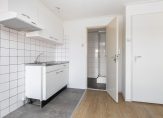 Het eenkamerappartement is voorzien van een living met keukenblok, badkamer met douche, wastafel, toilet en wasmachine aansluiting.