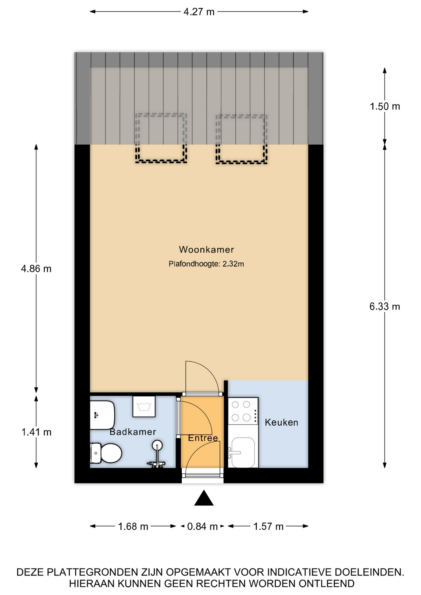 Je bereikt het appartement op de 1e verdieping via de trap en gezamenlijke entree. De afgesloten berging op de begane grond deel je met 4 andere studio’s.
