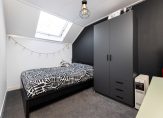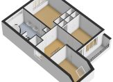 2e Verdieping: overloop met vaste kasten en berging – twee slaapkamers, waarvan één met dakkapel.