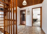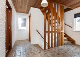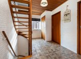 Begane grond: entree/ hal – toilet met fonteintje – garderobe – woonkamer met schouw en houtkachel – open keuken – toegang garage en achteringang.