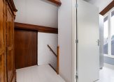 1e Verdieping: overloop – berging – drie slaapkamers, waarvan twee met vaste kasten – balkon – badkamer met douche, ligbad, dubbele wastafel en toilet.