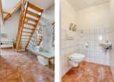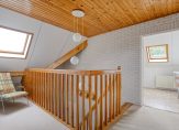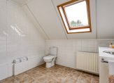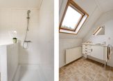 Op de eerste verdieping bevinden zich drie slaapkamers, waarvan één bereikbaar is via de slaapkamer aan de voorzijde. Daarnaast is er een royale, eenvoudige tweede badkamer met douche, wastafel en toilet. Ook is er een bergkamer aanwezig.