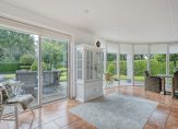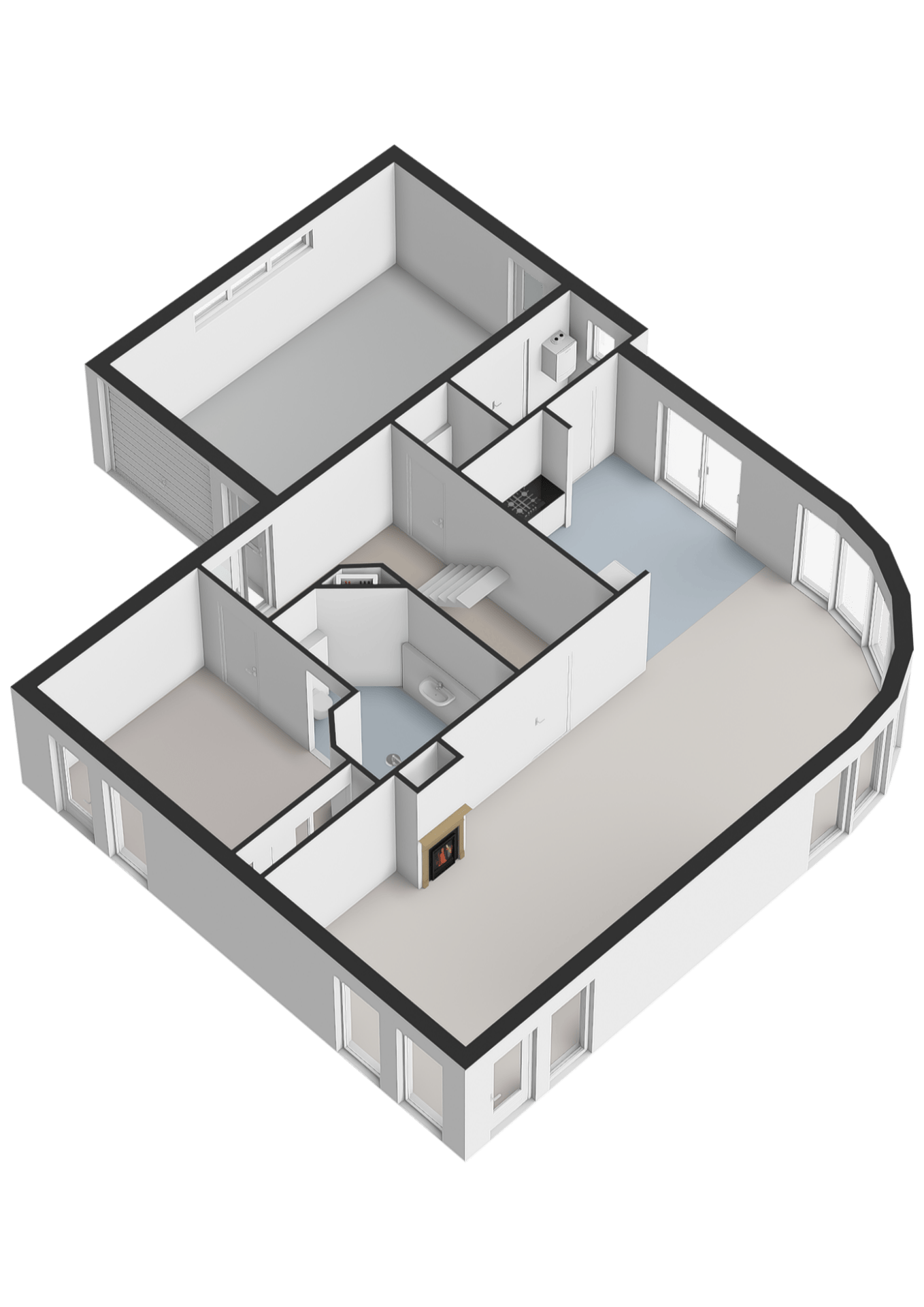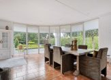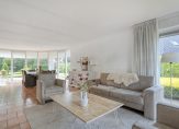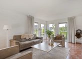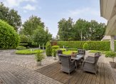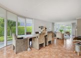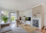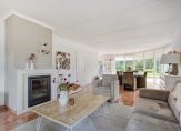 De ruime, tuingerichte woonkamer is een echte eyecatcher: een halfronde glazen pui met schuifdeur biedt een prachtig uitzicht op de fraai aangelegde achtertuin. Een gezellige houtkachel, samen met de vloerverwarming op de gehele begane grond, zorgt voor optimaal wooncomfort in alle seizoenen.