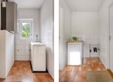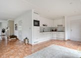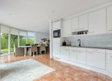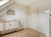 De keuken is uitgevoerd in een lichte kleurstelling en sluit perfect aan bij het sfeervolle interieur. Aangrenzend vind je de praktische bijkeuken met doorgang naar de aangebouwde garage. De garage is voorzien van elektrische deur, zolder, water- en elektra-aansluiting, verwarming en toegang tot de tuin. De zolder is geschikt als hobbyruimte.