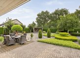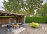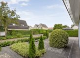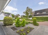 De tuin rondom de woning is fraai aangelegd en onderhoudsvriendelijk. De zonnige achtertuin van circa 355 m² biedt veel privacy, een gezellige overkapping met zitje en wordt afgescheiden door het aangrenzende gemeentebosje. De oprit biedt ruimte voor meerdere auto’s, en de woning beschikt over een inpandige stenen garage met vaste trap naar hobby/bergzolder.