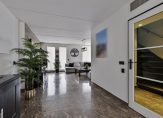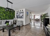 De ruime woonkamer (voorzien van airconditioning) heeft veel lichtinval, mooie tegelvloer met vloerverwarming, strak afgewerkte wanden en een gespoten plafond. Vanuit de woonkamer heeft u toegang tot de luxe open keuken.