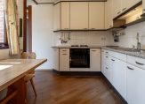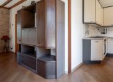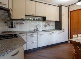 Aan de achterzijde van de woning, grenzend aan de woonkamer, bevindt zich de keuken van circa 9 m². Deze is ingericht met een praktische L-vormige inbouwkeuken in een lichte kleurstelling, voorzien van een duurzaam kunststof werkblad. De keuken is uitgerust met alle benodigde inbouwapparatuur: een 4-pits gaskookplaat, afzuigkap, oven en een koelkast. In de bijkeuken de aansluiting voor de vaatwasser.