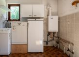 Direct grenzend aan de keuken bevindt zich de royale bijkeuken van circa 6 m², voorzien van de aansluitingen voor wasmachine en wasdroger evenals de opstelplaats voor de Cv-ketel. Via de buitendeur heeft u toegang tot de zonnige, vrij gelegen achtertuin. Extra praktisch: de bijkeuken biedt ook directe toegang tot de garage, ideaal voor extra bergruimte of het droog binnenkomen met de boodschappen.