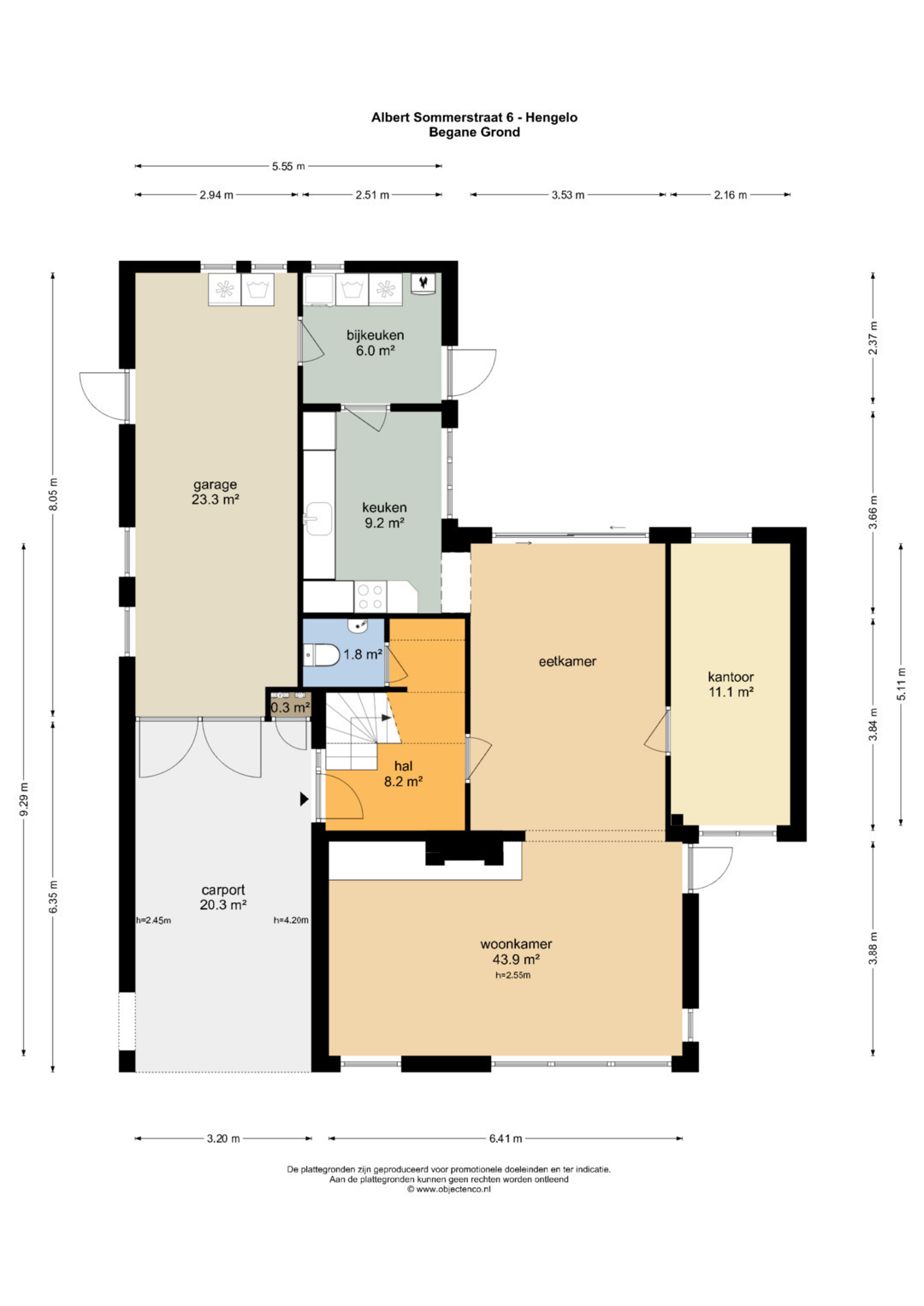 Op de begane grond vindt u daarnaast een praktische kantoorruimte van 11 m², perfect voor thuiswerken of als hobbykamer. Verder is er een dichte keuken met inbouwkeuken, een royale garage van 23 m².