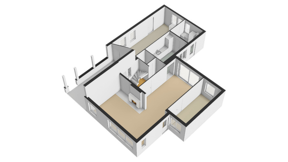 De grote raampartijen zorgen voor een prachtige lichtinval en geven de hele ruimte een open en frisse uitstraling. Dankzij de schuifpui aan de achterzijde stapt u zo de zonnige achtertuin in.