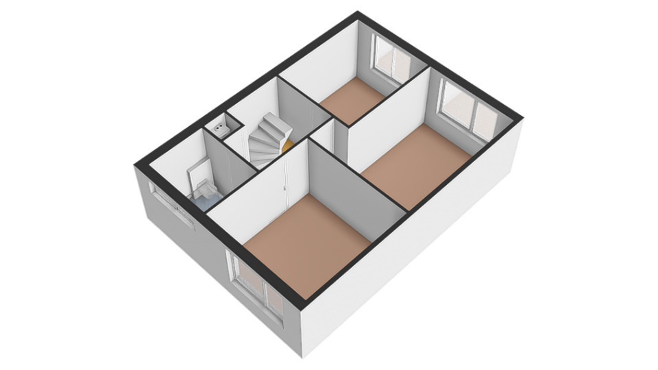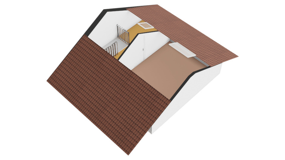 Via een vaste trap te bereiken royale verdieping met een ruime overloop en vierde slaapkamer. Het geheel is voorzien van vloerbedekking en twee dakvensters (beide aan de voorzijde). Achter de knieschotten is er voldoende opbergruimte.