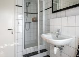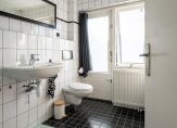 De badkamer is netjes afgewerkt en voorziet in een douchehoek, een hangend toilet met ingebouwde spoeling en een vaste wastafel. Ventilatie is op natuurlijke en mechanische wijze en verwarming geschiedt middels een radiator. Het geheel is uitgevoerd in een frisse heldere kleurstelling.