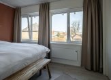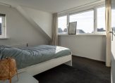 Overloop met de badkamer, een tweetal ruime slaapkamers en een garderobe-inloopkamer. De slaapkamers meten oppervlaktes van afgerond 12 en 7 m². De ouderslaapkamer aan de voorzijde is voorzien van vaste kastruimte. De kozijnen zijn van kunststof (draai-/kiep ramen met isolerende beglazing).