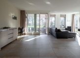 De ruime, lichte woonkamer van ongeveer 51 m² is uitgerust met een plavuizenvloer. Grote raampartijen zorgen voor een overvloed aan lichtinval en bieden een prachtig uitzicht over het omliggende groen en de vijver. De gehele woonkamer is voorzien van vloerverwarming. Bovendien zijn er aan de zuidzijde elektrisch bedienbare screens aan de buitenkant van de living.