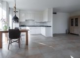 Het open keukendeel (7 m²) is uitgerust met een luxe inbouwkeuken in een hoekopstelling, voorzien van een granieten aanrechtblad met een rvs spoelbak. De keuken is verder compleet met de volgende inbouwapparatuur: een elektrische kookplaat, een koelkast met vriesvak, een combioven en een vaatwasser.