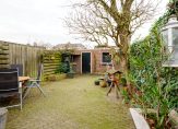 De verzorgde achtertuin, gelegen op het westen, waardoor u in de middag en avond heerlijk van de zon kunt genieten. De tuin is ingericht met bestrating en beschikt over borders met diverse beplanting. Achter op het perceel bevindt zich een vrijstaande stenen berging, voorzien van elektra, ideaal voor het stallen van fietsen, tuingereedschap of het creëren van extra opbergruimte.