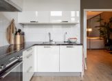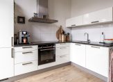 Grenzend aan de woonkamer een woonkeuken van maar liefst 20 m² met moderne inbouwkeuken in de stijl zoals u dat wenst. Het geheel biedt een luxe en sfeervolle uitstraling. Het aanrechtblad is voorzien van een RVS spoelbak. Naast een vaatwasser, koelkast met daaronder vrieslades en een inductiekookplaat beschikt de inbouwkeuken tevens over een oven. De vloer is eveneens voorzien van laminaat met daaronder vloerverwarming. De openslaande, extra hoge tuindeuren in de achtergevel zorgen ervoor dat woonkeuken en buitenterras als één voelen zodat u zowel in het voor- als najaar optimaal kunt genieten van de achtergelegen tuin. Het ‘buiten leven gevoel’ komt zo wel maximaal tot z’n recht.