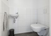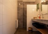 De courante badkamer is geheel betegeld en uitgevoerd in neutrale, moderne kleurstelling. Qua sanitaire voorzieningen heeft u als bewoner de beschikking over een dubbele wastafel met onderbouw, hangend toilet en een inloopdouche. Ventilatie geschiedt op zowel mechanische als natuurlijke wijze. Tevens heeft u de beschikking over vloerverwarming en een radiator.