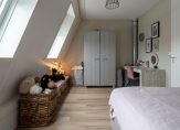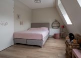 Overloop met bergruimte, een tweede separaat toilet (zwevend met fontein), badkamer en een drietal slaapkamers. De slaapkamers meten oppervlaktes van afgerond 16, 9 en 6,5 m² en zijn allen voorzien van een laminaatvloer en kunststof draai-/ kiepramen. In de bergruimte de aansluitingen voor wasmachine en wasdroger (beiden gelijktijdig te gebruiken d.m.v. een eigen groep in de meterkast).
