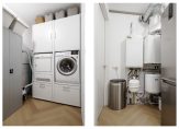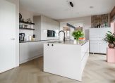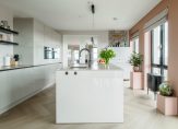 De leef-/woonkeuken is uitgerust met een kook-/spoeleiland, 4-pits inductiekookplaat met ingebouwde afzuiging, koelkast, stoomoven, combimagnetron, vaatwasser en een Quooker. Hier kookt u niet alleen met gemak, maar ook in stijl. Terwijl u kookt of dineert, geniet u van een prachtig uitzicht op de binnenstad. Dankzij de ruime opzet is er volop plek om gezellig te zitten, borrelen of tafelen met vrienden en familie.