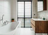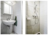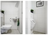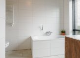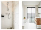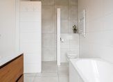 De badkamer grenzend aan de grootste slaapkamer is voorzien van een inloopdouche, toilet, wastafel, elektrische radiator en ligbad. De separate gastenbadkamer beschikt over een inloopdouche en een wastafel. Daarnaast is er in de hal een afzonderlijk toilet met urinoir aanwezig. Beide badkamers zijn afgewerkt met een tegelpakket en sanitair van hoogwaardige kwaliteit.
