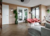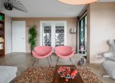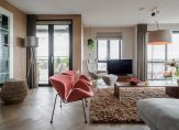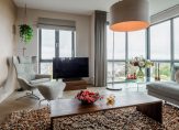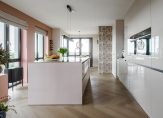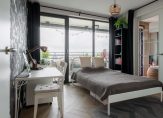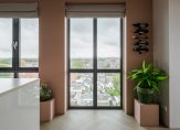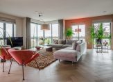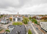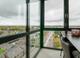 De royale woonkamer van 43 m² is voorzien van grote raampartijen, met zonwering aan de westzijde. De raampartijen tot aan de vloer geven een overvloed aan daglicht en een panoramisch uitzicht over de stad, kortom een heerlijke ruimte om te ontspannen.