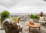 Het ruime balkon van 18 m² is toegankelijk via twee openslaande deuren en gelegen op het westen, zodat u tot laat in de avond kunt genieten van de zon op uw balkon! Het royale zonnescherm van circa 4,5 meter breed biedt volop beschutting op zonnige dagen.