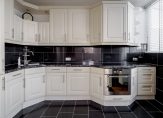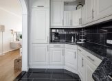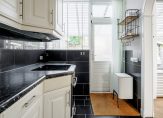 De half open keuken is voorzien van een complete inbouwkeuken in L-vormige opstelling met volop bergruimte en diverse treklades. Het geheel is opgetrokken in lichte kleurstelling en afgewerkt met een kunststoffen aanrechtblad waarin verwerkt een 1,5-RVS spoelbak. Als gebruiker/bewoner heeft u de beschikking over de navolgende inbouwapparatuur: afzuigkap, 4-pits keramisch kookplaat, koelvriescombinatie, vaatwasser en oven.