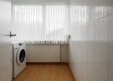 Overloop met wasruimte, drie slaapkamers en de badkamer.