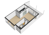 De badkamer is voorzien van een douche, wastafel en toilet. Ventilatie geschiedt op natuurlijke wijze.