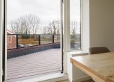 De woonkamer heeft een PVC-visgraatvloer en is voorzien van vloerverwarming, wat voor een comfortabele sfeer zorgt. Er is een praktische vaste kast en via de woonkamer is het balkon bereikbaar, waardoor er veel natuurlijk licht binnenkomt en u een fijne buitenruimte heeft van maar liefst 20 m²!