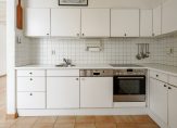 De half open keuken is voorzien van een praktische hoekopstelling met bovenkasten in lichte kleurstelling met een kunststof aanrechtblad waarin verwerkt een RVS spoelbak. Als (inbouw)apparatuur heeft u de beschikking over een 4 pits keramische kookplaat, afzuigkap, oven, koel-vriescombinatie, vaatwasser en een elektrische boiler.