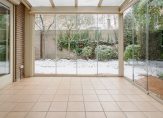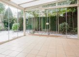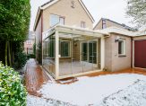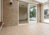 Via de schuifpui bereikt u de veranda, voorzien van glazen raampartijen, waardoor binnen en buiten naadloos in elkaar overlopen. Dankzij de aanwezige heater en zonneschermen is dit een heerlijke plek om het hele jaar door comfortabel te genieten.